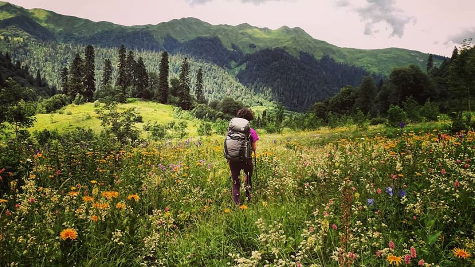 ოცდაათ კილომეტრზე, ხან მოსაწყენი გზა, ხან მდინარეები და ხანაც ორ მეტრიანი ყვავილები მქონდა გამოთელილი...ასეთ დროს სწრაფად, შესვენების გარეშე მოძრაობა ემოციურად ძალიან გფიტავს, გინდა პირველივე ლოდზე ჩამოჯდე და ქვითინი დაიწყო, ნახევარი საათით გვიან რომ დაღამდეს რა მოხდებათქო ეწუწუნო სამყაროს...მაგრამ სამყარო მასე არ მუშაობს... ფეხი უნდა აუწყო და დროში ჩაეტიო. მანძილის დანაწილება დავიწყე. ეს ის მეთოდია რაც ყველაზე რთულ მომენტებში ყოველთვის მშველის... ბავშობიდანვე ვიყენებ. მისი ეფექტურობა ყოველ მეორე გასვლაზე მტკიცდება. აღმოვაჩინე რომ არამარტო მე მქონია ეს გზა ნაპოვნი. გზა თუ როგორ უნდა მოიტყუო თავი. სიმაღლე დაალოხებით 500 მეტრი იყო ასაწევი. ხოდა დავყავი., ჩანჩქერთან რომ მივიდოდი ზუსტად მესამედი მექნებოდა გავლილი, ანუ ორი იმდენი გასავლელი რაც გავიარე, ყველაზე დიდ ლოდს რომ გავცდებოდი მერე თითქმის მისული ვიყავი. ასე საკუთარ თავს პატარა დავალებას ვაძლევდი და მიღწეულით ბედნიერი უკვე ვგრძნობდი ენერგიას რომელიც კიდევ ერთ პატარა დავალებას გადამატანინებდა...40 წუთიც არ დაგვჭირდა და უკვე საბანაკეზე ვისხედით. ^_^