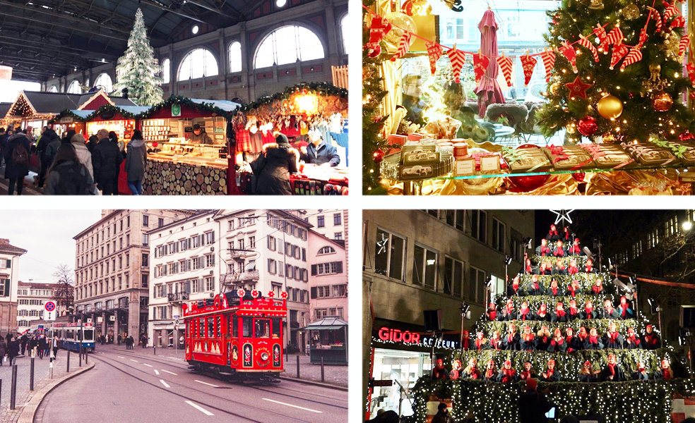 ციურიხში დღესასწაული მოდის მაშინ როდესაც ვანჰოშტრასაზე 12 ათასი სანთელი ინთება, და სანტაკლაუსი სპეციალურად მოწყობილ ტრამვაით ქალაქის ქუჩებში ასეირნებს ბავშვებს. ქალაქი საშობაო ტრადიციებს უფრთხილდება: 1968 წლიდან ნებისმიერ მსურველს საკუთარი ხელით შეუძლია გამოძერწოს სანთელი, მთავარ მოედანზე ზამთრის ცირკი თავის წარდგენებს აწყობს, დეკემბრის დასაწყისიში სანტა კლაუსის ფორმაში გამოწყობილი 300-მდე ადამიანი საქველმოქმედო ტრადიციულ მარათონს აწყობს.