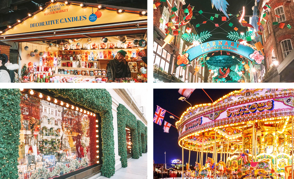 თუ ჰაიდ-პარკის გარეთ გსურთ წასვლა, გაისეირნეთ ოქსფორდის და რიჯენტის ქუჩებზე. წინასაშობაო ლონდონი მთლიანად განათებულია, განსაკუთრებით სამეფო ბოტანიკური ბაღი, სადაც ერთდროულად ათასობით სანთელი ანთია. არ დაგავიწყდეთ მთავარ ნაძვის ხესთან სურათის გადაღება, რომელიც ტრაპალგარის მოედანზეა. თუმცა იმისათვის რომ მთლიანად შეიგრძნოთ აქაური ჯადოსნური ატმოსფერო - უნდა დასხდეთ ჰოგვორტსის სასადილოში და გაისეირნოთ ტემზაზე სანტასთან ერთად.