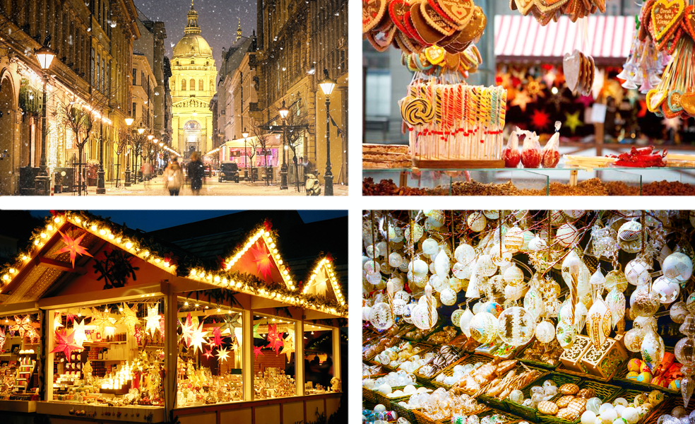 საშობაო ბუდაპეშტის ატმოსფეროს შეგრძნება ადვილია - უბრალოდ მიდით ქალაქის გულამდე, ვერეშმარტის მოედნამდე, სადაც უზარმაზარი ბაზრობა დაგხვდებათ. აქ შობის და დარიჩინის სუნი ტრიალებს. საღამოს შეგიძლიათ დაესწროთ საშობაო კონცერტებს. აქვე ესტუმრეთ მსოფლიოში ყველაზე პოპულარულ კაფეს Gerbeaud და დააგემოვნოთ იმავე სახელწოდების ტორტი. მეორე არანაკლებ თვალწარმტაცი ბაზრობა წმინდა სტეფანის ბაზილიკასთან გელით, სადაც საღამოობით მუსიკალური შოუ იმართება. ზამთრის ბუდაპეშტი განსაკუთრებით გულuხვია თავისი გასართობი პროგრამებით - შეგიძლიათ ოპერაში ნახოთ “მაკნატუნა“, ინებივროთ თერმულ აბანოებში ღია ცის ქვეშ და ყინულის მოედნებზე ისრიალოთ.