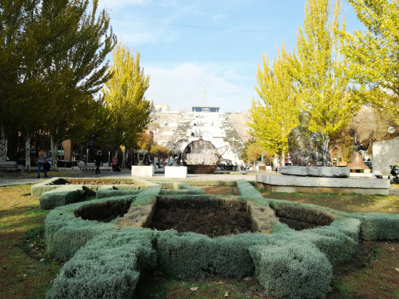 ერევნის ერთ-ერთი ყველაზე ცნობილი ადგილი ,,კასკადია“, რომელიც წარმოადგენს უზარმაზარი კიბეების კომპლექსს. კიბეებს შორის სივრცეც იმხელაა, რომ კასკადი ე.წ სართულებად იყოფა და თუ მაინცდამაინც კარდიოვარჯიშის მოყვარული არ ხართ, შეგიძლიათ, ესკალატორი გამოიყენოთ. ე.წ სართულებზე სხვადასხვა სახის ქანდაკება და შადრევანია, კასკადზევეა გაშენებული ხელოვნების გალერეა. პირადად ჩემთვის კასკადის წინ არსებული სივრცე/სკვერი უფრო საინტერესო აღმოჩნდა. კარგ ამინდში უბრალოდ განტვირთვის გარდა შეგიძლიათ, აქ განთავსებული სახალისო ქანდაკებების თვალიერებითაც გაერთოთ.