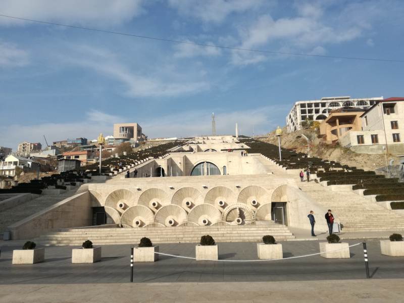 დამღლელი მგზავრობის შემდეგ ერევანში ჩასვლა დიდი შვება იყო, თუმცა იქაურ ავტოგასამართ სადგურზე გავჩერდით თუარა თავი დიდუბის/ ოკრიბის სადგურზე მეგონა იმ განსხვავებით, რომ ამ შემთხვევაში ტაქსისტები რუსულად და სომხურად მთავაზობდნენ დანიშნულების ადგილამდე მიყვანას. პირველ დღეს ცენტრალურ ნაწილში არ მომიწია დარჩენა, ამიტომ ერევნის გაცნობა მეორე დღეს გამოძინებულზე გადავწყვიტე. ერევანი თბილისზე დაახლოებით სამჯერ პატარაა ფართობით, ამიტომ ქალაქის დასათვალიერებლად 2 დღეც საკმარისია, თან თუ კარგი ორიენტაციის უნარი გაქვთ შეიძლება google map-ის დახმარება ერთხელ დაგჭირდეთ და მერე უკვე თქვენითაც გაიკვლევთ გზას, ჩემს შემთხვევაში კი იმდენად ,,დავუმუღამე“ ერევანს, რომ მესამე დღეს მე თვითონ ვუთითებდი ჩემს სომეხ მეგობარს საით უნდა წავსულიყავით კონკრეტულ ადგილამდე მისასვლელად. (: