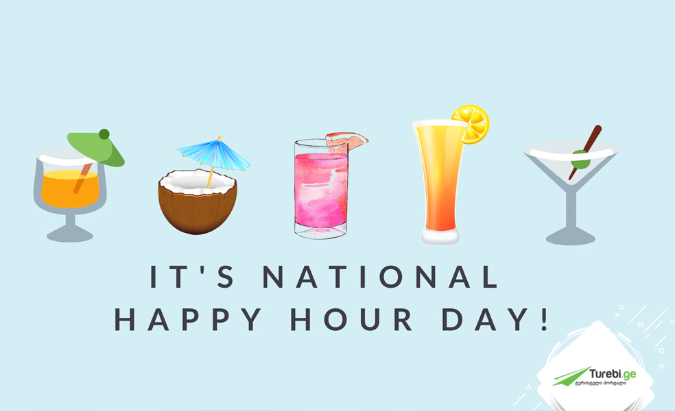 “Happy Hour day” - წარწერას ხშირად შევხდებით უცხოეთში, სხვადასხვა ბარ-რესტორანის ან კაფის აბრაზე, თუმცა ბოლო დროს საქართველოშიც გახშირდა მსგავსი „საათი“. თუ გავუყვებით ისტორიას, აღმოჩნდება რომ ეს დღე და საათი დაწესდა აშშ-ს სამხედრო-საზღვაო ძალების მიერ 1913 წელს. მთელი პირველი მსოფლიო ომის განმავლობაში ამით აღნიშნავდნენ ყველა მომენტს, როდესაც ჯარისკაცებს შეეძლოთ დასვენება, მუსიკის მოსმენა, ცეკვა, მოწევა. შემდგომში ეს იყო პერიოდი სამუშაო დღის დამთავრებასა და ვახშამს შორის, როდესაც მეგობრები წასახემსებლად სხავდასასხვა ბარ-რესტორანში მიდიოდნენ.