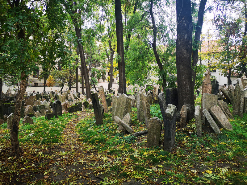 სინაგოგიდან გამოსვლისთანავე ხვდები სასაფლაოზე, რომელიც ასევე ერთ-ერთი უძველესია ევროპაში (Starý židovský hřbitov). ეს სასაფლაო სადღაც მე-15 საუკუნისაა, და იძახიან რომ ყველაზე ძველი საფლავის ქვაზე აღნიშნულია 1439 წელი. როგორც გავიგეთ ებრაელებს არ ჰქონდა სასაფლაოს გაფართოების შესაძლებლობა, ამიტომაც ისინი იძულებულები იყვნენ ვერტიკალურად, ფენებად დაესაფლავებინათ გარდაცვლილები. ამბობენ, რომ აქ 10-ზე მეტი ფენაა და 100 ათასზე მეტი გარდაცვლილი. საფლავის ქვაზე დახატული ცხოველი ან ფრინველი ნიშნავდა ადამიანის გვარში შესაბამისი სიტყვის არსებობას. ქვაზე სხვადასხვა ნივთის აღნიშვნა (სიტყვაზე მაკრატელი) აღნიშნავდა მის პროფესიას.