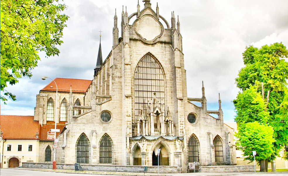 გარედან ეს ტაძარი დიდად არაფრით არის გამორჩეული. ეს არის გოთიკურ სტილში, ოდნავ პირქუში შესახედაობის ტაძარი, რომელშიც ჭარბობს მარტივი ფორმები და გამოყვანილია მკაცრი ხაზები - მსგავსი ვიზუალის მქონე შენობებს კი ჩეხეთში საკმაოდ ბევრს ნახავთ.