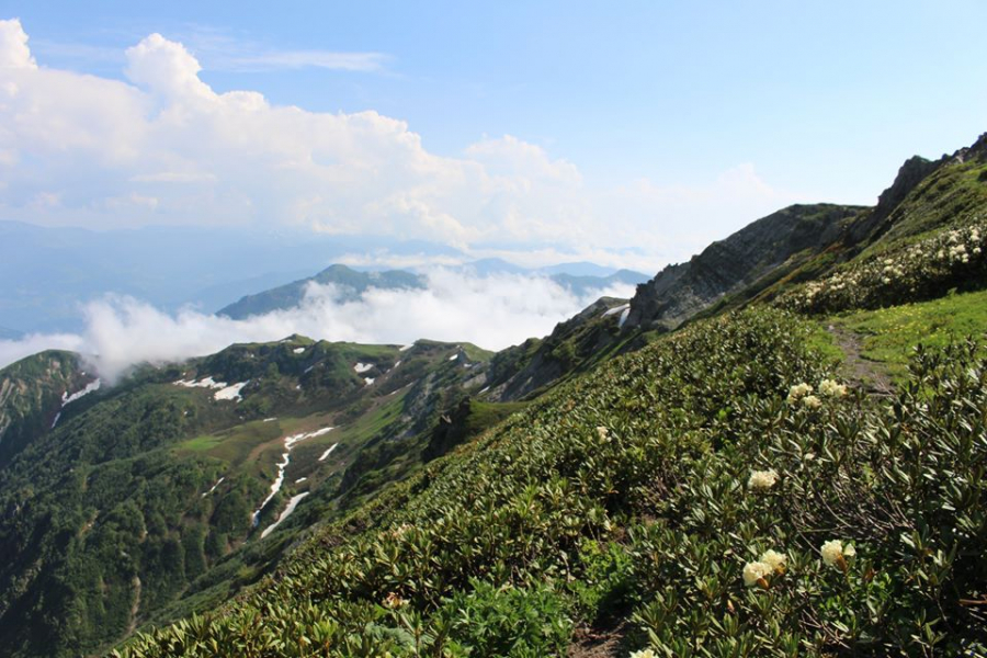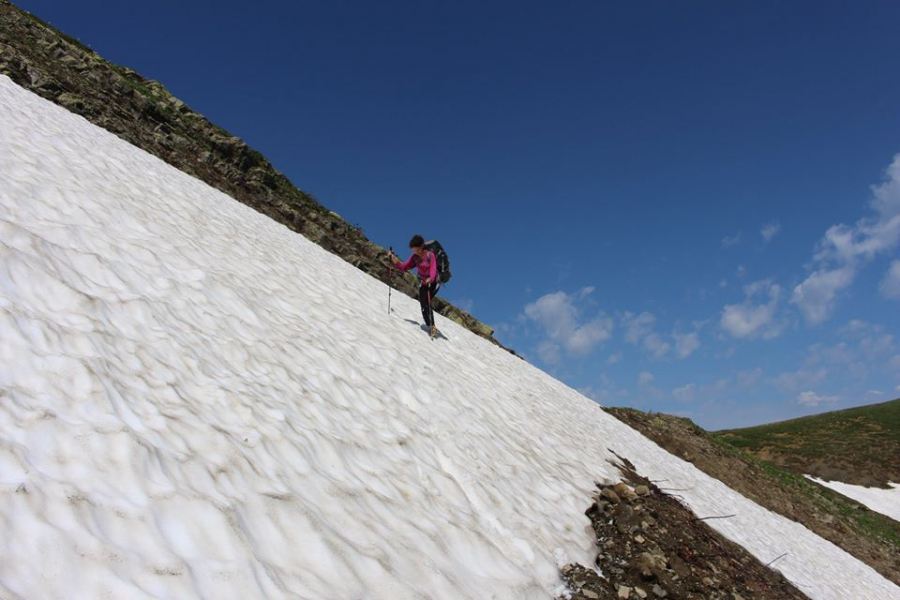 აკრეფილი სიმაღლე ახლა უნდა დავკარგოთ...და როგორც დაღმართზე ხდება ხოლმე ციცაბო აღმართის შემდეგ... დავეშვით, ოღონდ სხვაგან. უკან ასვლას ისევ გვერდულად ხეობაში ჩასვლა და ისე დადგომა ვარჩიეთ მარშუტს, იოლი იყო დეკები რომ არ არსებობდეს...მაგრამ არსებობდნენ და ჩვენს შორის იდგნენ...სამი რამე მძაგს სამყაროში: პირველი - მაგიდის მუდამდღე ნესტიანი საწმენდი ტილო. მეორე - ბულგარული წიწაკა და მესამე - დეკა, ჩემსა და სწორ მარშუტს შორის რომ დგას. მოკლედ კი არ გადავიარეთ, გადავფორთხდით, გადავცურეთ დეკების აღელვებული ტოტ-ტალღები და გავსწორდით... კიდევ ერთ მთას გვერდიდან ცერად მოვუარეთ, და ქედით გადავედით გადამკვეთ წერტილში. ახლა უკვე ნახევარზე ოდნავ მეტი გვქონდა გავლილი, მაგრამ ყველაზე ციცაბო , კილომეტრიანი აღმართი ჩვენს წინ იდგა. ქედზე სილუეტები შევამჩნიე, სამი კაცი აქეთ-იქით დადიოდა.... ნეტავ გვხედავენ? ისე მოძრაობენ თითქოს ჩვენს წვალებას უყურებენ და ერთობიან, ან იქნებ არც... მაგაზე მეტად სხვა რამ ფიქრები შემომაწვა... წყლის რამდენიმე წვეთიღა თუ შეგვჩენოდა, დაბლა კი ტბას ვხედავდით, ტბას რა, ჭაობს მაგრამ რამდენიმე ნაკადული ნამდვილად ჩაედინებოდა. ვერ ჩავედით... ძალა ზუსტად იმაზე ოდნავ ნაკლებიღა გვქონდა ვიდრე კიდევ 10 კილომეტს ეყოფოდა ამ რელიეფზე, ათი კი ნამდვილად გვქონდა ტბამდე დარჩენილი...კიდევ ერთ საშინელ ხოებაში ჩასვლა ამოსვლის თავი არცერთს გაგვაჩნდა... –„ ათი კილომეტრია რა, გავიტანთ უწყლოდაც...“ თავს ვიმშვიდებდით.