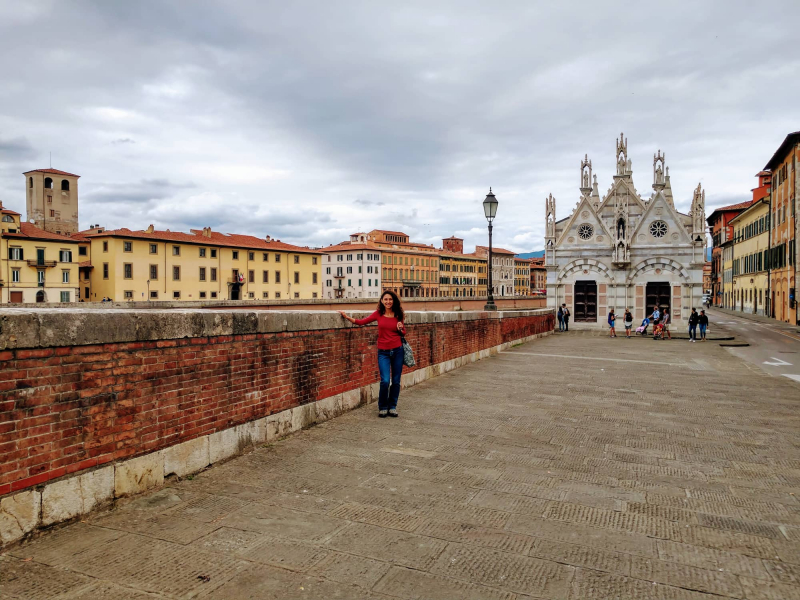 ხოდა გადასამოწმებლად ჩავედით. პიზის აეროპორტიდან ცენტრი 3-4 კმ-ში მდებარეობს. აეროპორტი პატარა და კომფორტულია. ქალაქში მეტროც მიდის ავტობუსებიც, მაგრამ ჩვენ გვეძვირა 4 კილომეტრში რვა ევრომდე გადახდა და ფეხით დავადექით გზას, თანაც ქალაქს ასე უკეთ ვნახავთთქო ვიფიქრეთ.